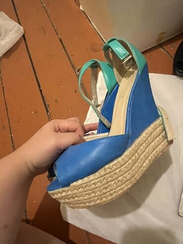 - Michael Michael Kors Terri Wedge səndəl. Material: denim (tünd göy), platformalı/wedge daban, nazik qayışlar və MK loqolu bəzək. Ölçü: 35.5 (5.5M). Qutusu üzərində model kodu: 40S7TEHA1D, rəng DK...