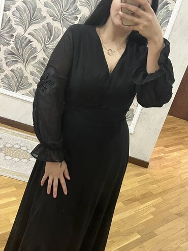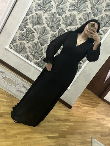 Qara rəngli zərif maxi don Ölcü:Xl - Model: V-kəsimli, sarafan tipli