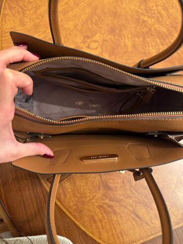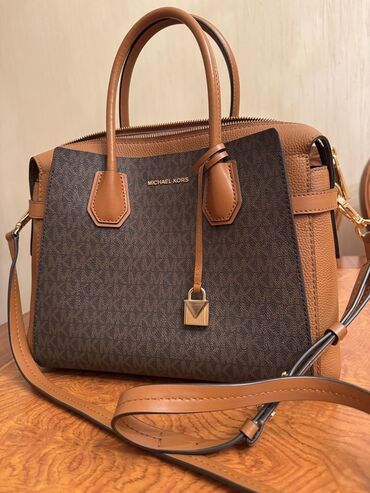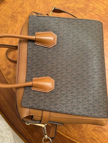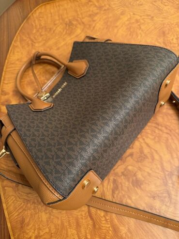 - Rəng: qəhvəyi monoqramlı MK kanvas və karamel rəngli dəri detallarla