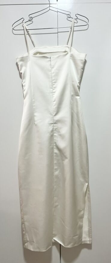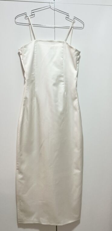 Ağ rəngli, zərif atlas effektli midi don.