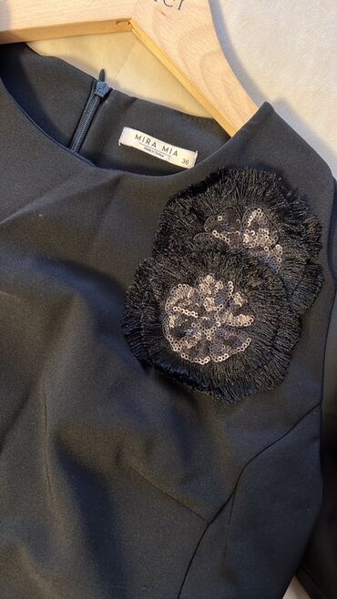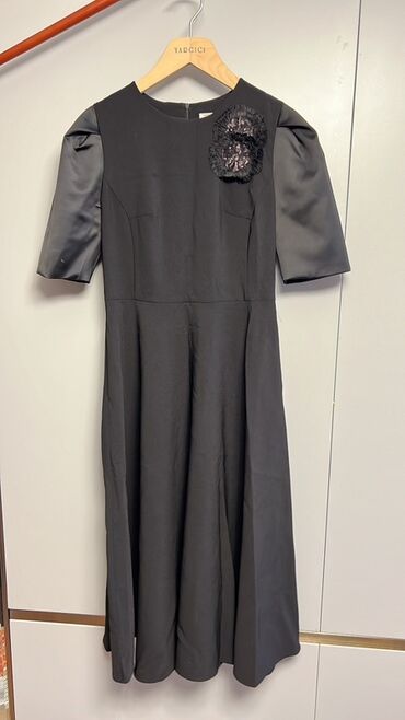 Ozumlari aciq kokteyl/libas – açıq mavi rəng - Model: bədənə oturan, midi uzunluq (dizdən aşağı). - Dizayn: Asimmetrik kəsim, yalnız sağ çiyində dekor. Çiynində həcmli tük/peykkürklü applikasiya il...