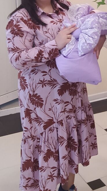 2) Açıq bənövşəyi rəngdə, qəhvəyi bitki naxışlı maxi paltar