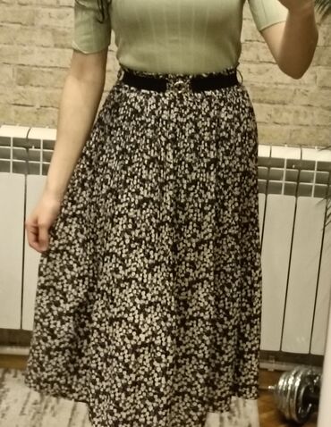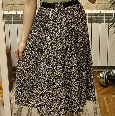 Qara rəng üzərində xırda ağ çiçək naxışlı, piləli midi ətək.