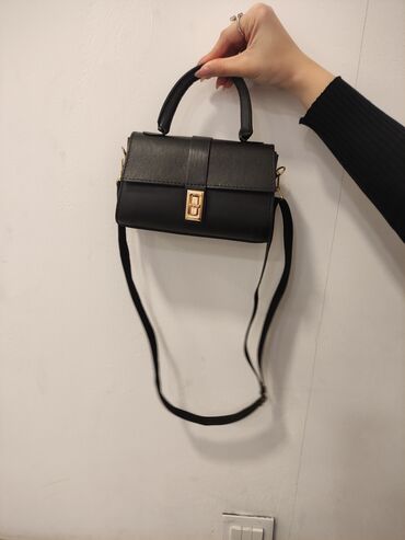 Zərif və dəbli qadın əl çantası ikinci əl - Rəng: qara - Material: hamar dəri fakturalı (süni və ya təbii dəri görünüşlü) - Dizayn: strukturlu korpus, üstdən möhkəm tutacaq - Bağlanma: ön tərəfdə ...