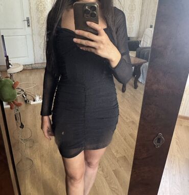 Qara mini don – mesh detallar və büzgülü dizayn - Rəng: qara -