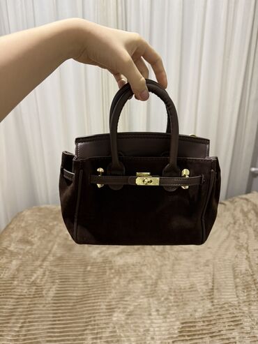 Qəhvəyi süet mini çanta - Material: yumşaq süet tekstura - Rəng: isti qəhvəyi/konyak ton - Forma: dikdörtəb, zərif qapaqlı dizayn - Bağlanma: metal klipsli kilid (qızılı ton) - Daşıma variantları:...