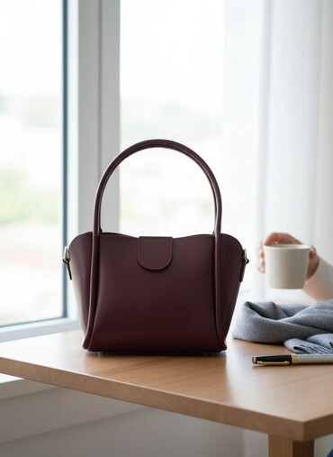 Zərif bordo rəngdə 3-lü qadın çanta dəsti. - Böyük tote çanta: geniş