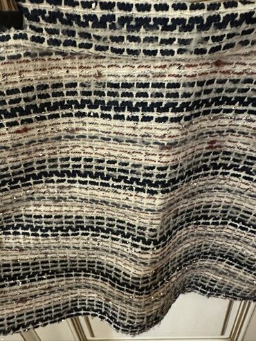 Qəhvəyi-boz tonlarda xalı naxışlı, qısa pliseli ətək. - Klassik xətlərlə kvadratlı (rubuşka) deseni - Kəmər hissəsi dar, beldən açılan dərin plisələr - Yumşaq toxumalı, orta qalınlıqda parça (pay...
