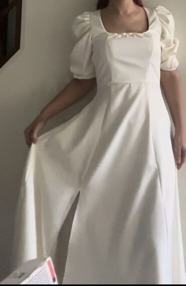 - Dizayn: Kvadrat yaxalıq, romantik üslublu şiş puff qol (dizdən yuxarı uzunluqda qol), yuxarı hissədə yığma detal.