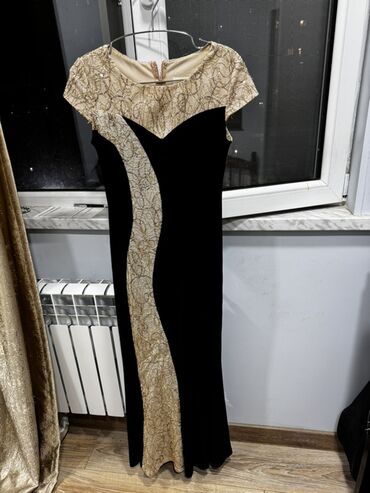 - Material: əsas hissə qara məxmər; ön hissədə və yuxarıda şampan tonunda naxışlı parça (ipək/şantung təsviri), üzərində qızılı sapla dekorativ naxışlar