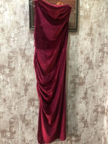 Yenidir M-L razmere geden Qırmızı məxməri axşam/gecə geyimi - Material: yumşaq, parlaq məxmər - Rəng: dərin şərab-qırmızı (burgund) - Model: uzun, bədənə oturan siluet - Dizayn xüsusiyyəti: bir tə...160 AZN
