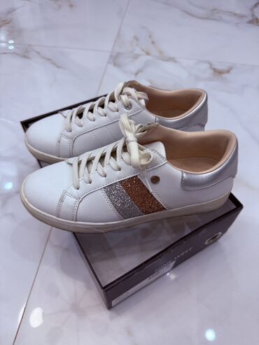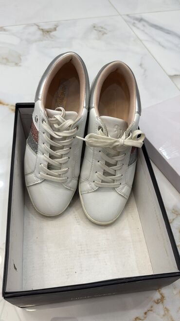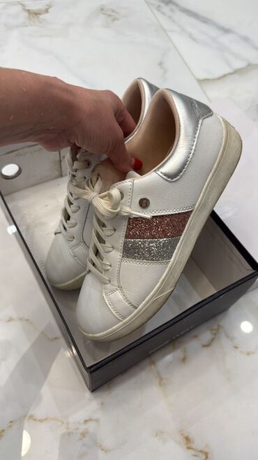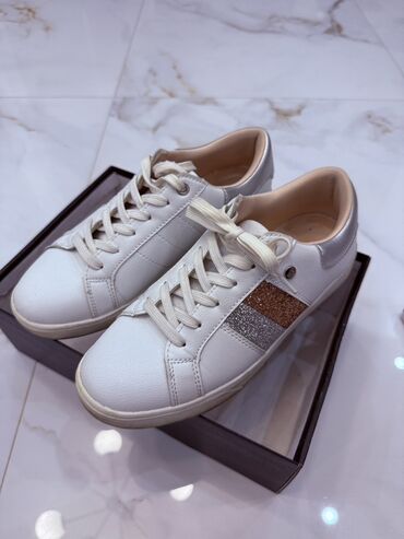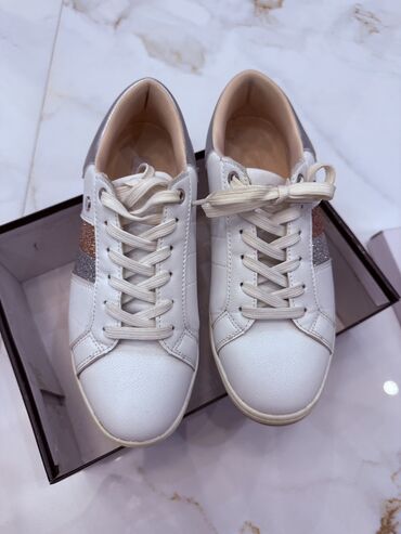 - Dizayn özəllikləri: Minimalist siluet, yan tərəfdə parıltılı iki zolaq, yan hissədə metal loqo nişanı