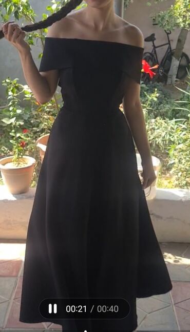 L razmer Qara, uzun, bardot (çiyin açıq) axşam donu - Rəng: klassik