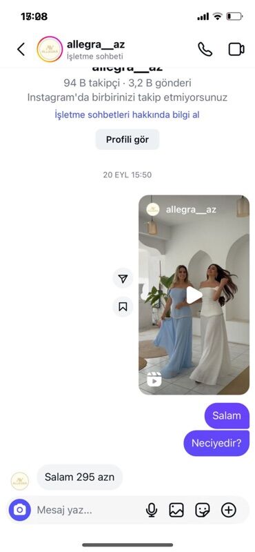 Nərgiz butikdən alınıb 200 manata 1 dəfə toya geyinilib 50 manata