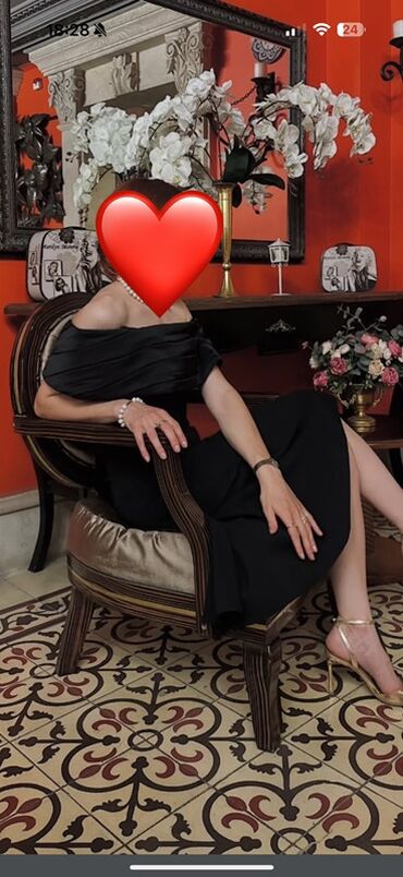 Ziyafət donu – 30 AZN - Rəng: qara - Stil: bədənə oturan, midi uzunluq - Yaxa: balıqçı tipli qapalı yaxa - Qol: qısa qol - Çiyin detalları: asma daş/sancaq bəzəkləri - Etek hissə: asimmetrik kəsim...