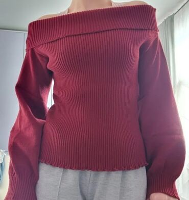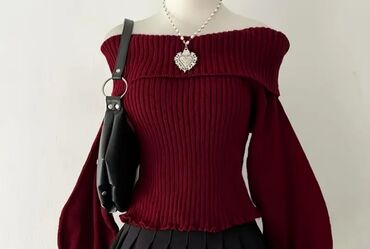 Bordo rəngli off-shoulder trikotaj sviter - Model: çiyinləri açıq