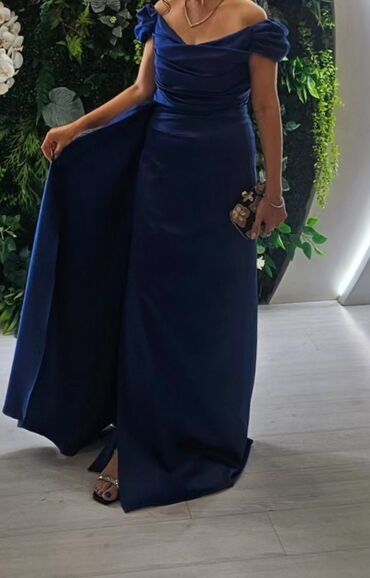 Cagteksde tikilib baha qiymete korsetli.wleyfli,belinin kemeri sokulub .S-M razmere uygundur.2 defe geyinilib yeni kimiZərif gecə/libas – tünd göy rəngdə, uzun və axıcı siluet. - Model: of-shoulde...