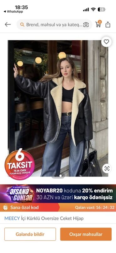 Qeyd olunan ad şəkillərdə: “MEECY İçi Kürklü Oversize Ceket Hijap”.