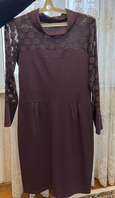 Sadə siluet və dekorativ krujeva detalları ilə diqqətçəkən, rahat geyinim təqdim edən paltar.