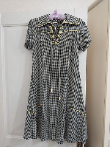 Qadın paltarı – sarı-qara naxışlı. Las vegas maqazasından alınıb. Bir dəfə geyilib. Küləkdə uçmur. Parçası keyfiyyətlidir. Primerka var.