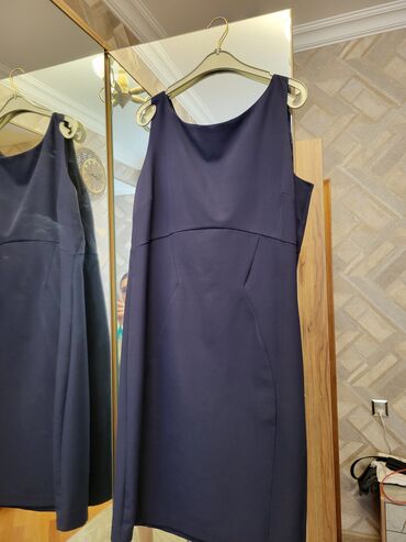 4) Tünd göy (navy) klassik qolsuz paltar
