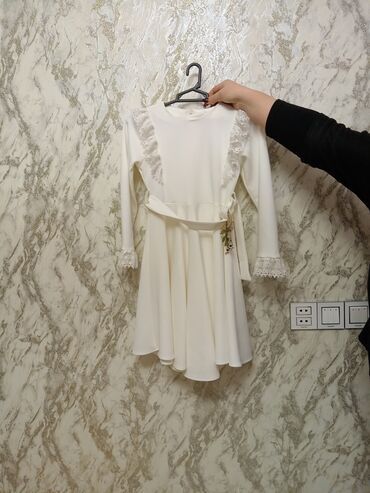 - Ağ mini don (uzunqollu): dairəvi yaxa, ön hissədə krujeva bəzəklər, kəmərlə birlikdə. Ətək yaylı kəsim, qollarda və ətək kənarlarında zərif detallarla.