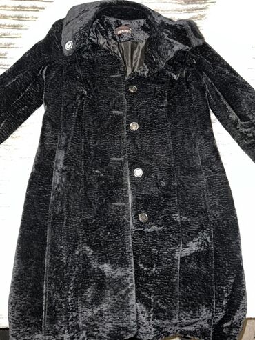 Qara süni kürk qadın paltosu - Model: düz kəsimli, qısa/orta uzunluqda (bud səviyyəsi) - Material: yüksək sıxlıqlı, yumşaq teksturalı süni kürk; iç hissə təmiz və hamar astarlı - Rəng: dərin qara,...