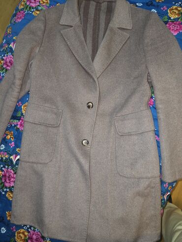 CREP qadın palto – Ölçü S - Rəng: klassik açıq bej/kamel - Üslub: ikicərgəli düymələmə, geniş haşiyəli yaxa (lapel) - Material hissiyyatı: sıx, isti və hamar toxuma (payız-qış üçün uyğundur) - Cib...