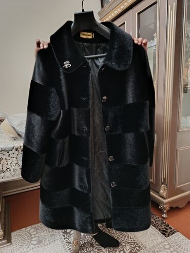 - Dizayn: klassik geniş yaxalı, ön hissədə iri düymələr, sol yaxada bəzək broşı, yanlarda iki ciblə