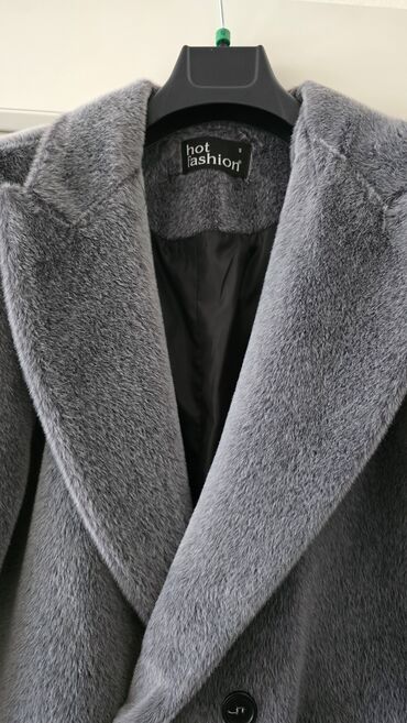 “Hot Fashion” qadın paltosu – uzun, klassik siluetli, tək sətirli düyməli model. Rəng: soyuq boz. Yumşaq tüklü teksturaya malik parça və tam astar komfortlu istilik verir. Geniş haşiyəli yaka, çiyinləri formalaşdıran kəsim. Ön hissədə qapaqlı iki yan cib. Uzun qol, təmiz xəttli ətək. Şəhər və gündəlik şık obrazlar üçün eleqant seçimdir. Ölçü: S (etiketdə göstərilib). Brend etiketi: “hot fashion”.