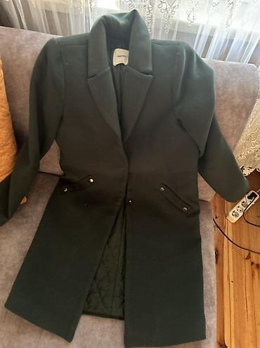 Qadın palto heç geynilməyib razmer düzgün gəlmədiyi üçün satılır - Rəng: tünd yaşıl (xaki tonunda) - Uzunluq: midi/uzun siluet - Bağlanma: ön hissədə iri dekorativ düymələr - Yaxa: kontrast xallı/...
