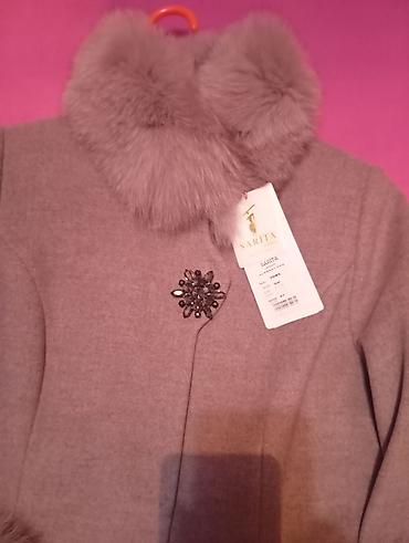 Zərif qadın palto – açıq boz rəngdə, klassik dizayn. (PAUCINNI razmer 42) - Yumşaq xəz yaxalıq və manjetlər: çıxarıla bilən effektli xəz detalları qış görüntüsünü tamamlayır və istiliyi artırır. -...
