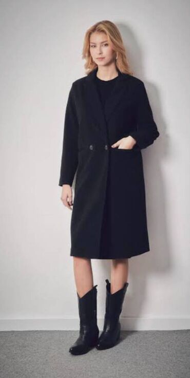 Qadınlar üçün yeni klassik qara palto - Model: ikiqat düyməli, dizdən aşağı uzunluq - Rəng: qara - Yaxa: klassik döngəli yaxa - Qol: 3/4-ə yaxın qısaldılmış düz qol - Daxili: hamar astar - Bağlanm...