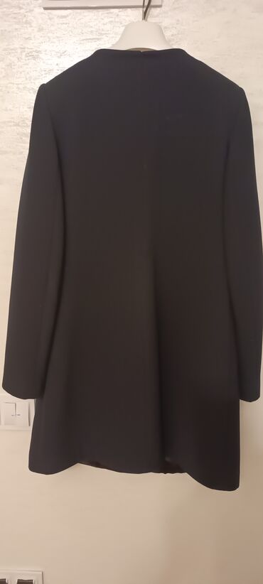 Qadın palto/kapüşonsuz üst geyim – Dizara brendi - Rəng: qara - Model: açıq önlü, düyməsiz; qısa qol - Yaxa: stend yaxa (boğazətrafı yığcam forma) - Kəsim: ön və arxa hissədə dekorativ diaqonal pi...