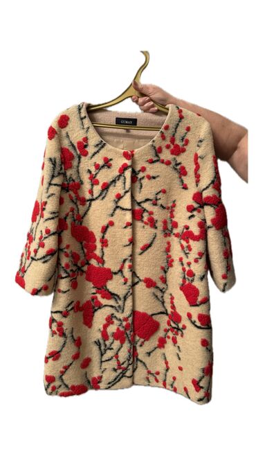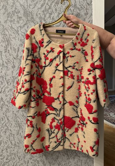 - Rəng və naxış: Krem fon üzərində qara budaq və qırmızı çiçək motivləri ilə dekorativ rellef naxış.