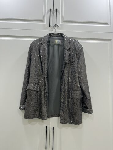 YeniGümüşü rəngdə parıltılı qadın blezeri