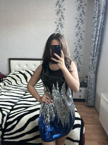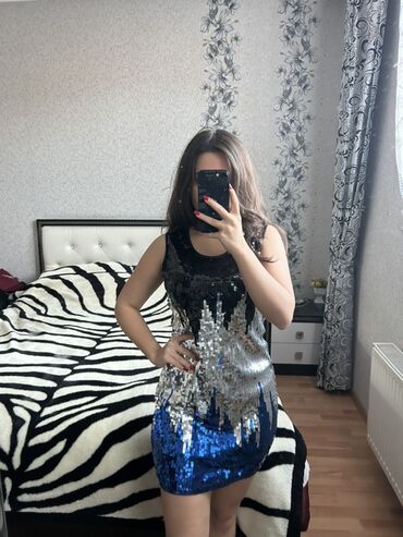 - Rənglər: qara, gümüşü və parlaq mavi kombinasiyası; payetlər işıq altında güclü parlaqlıq verir