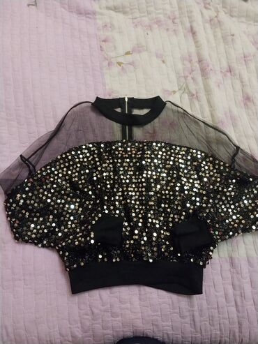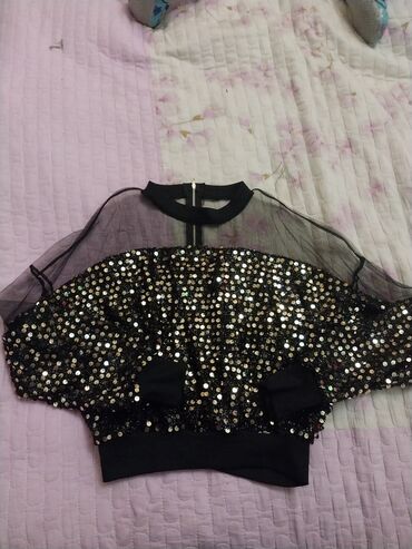 Qara zərif bluz - Rəng: Qara - Parça: İncə şəbəkə/til parça, xırda parıltı detallar ilə - Dizayn: Dairəvi yaxa, 3/4 uzunluqda şəffaf qollar - Aşağı hissə: Ornamenti olan krujeva (qıpqara) ətək kən...