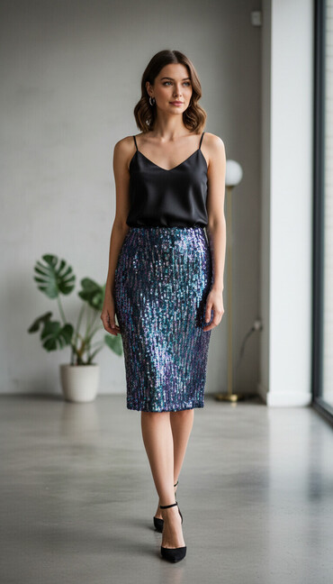 Qara-ağ enli zolaqlı ətək - Model: A-kəsim, qabarıq/plissé qatlı
