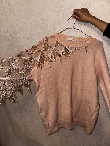 Zərif açıq çəhrayı rəngdə oversize sviter - Yumşaq, tüklü teksturaya malik, rahat və isti material - Geniş, uzun qol forması – modern və sərbəst siluet - Yuxarıdan enli, aşağıya düz kəsim; rahat o...
