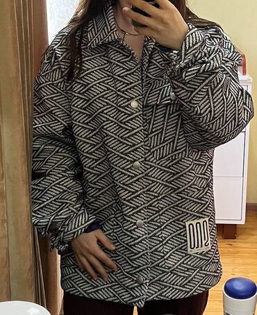 - Kəsim: oversayz, basqılı düymələr (snap), böyük yaxa