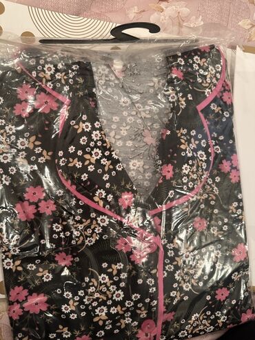 Qızılı-çəhrayı rəngdə ev geyimi dəsti - Brend: Egzotik Asortik - Ölçü: S - Dəst: 2 parça - Üst: ikiqat düyməli, geniş şal yaxalı, 3/4-uzunluqda qol, ön hissədə iki böyük yan cib - Alt: elastik...