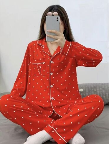Pinjama, cox yunsaq ve isti materiali var, deste salvar, koynek, gece yatmaq ucun gozluk daxildir, tezedir