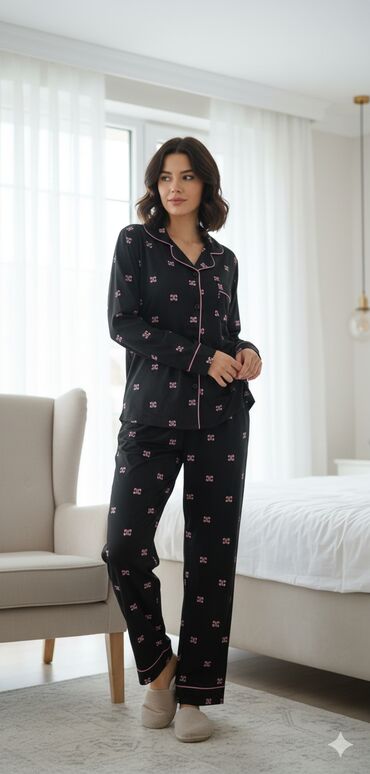 - Modellər: klassik düyməli yaxalıqlı pijama dəstləri və krujuqsuz, dairəvi yaxalı “Sweet Cherry” yazılı dəst