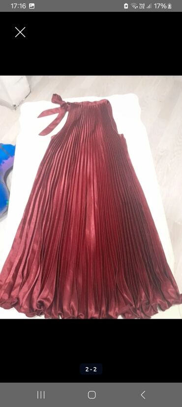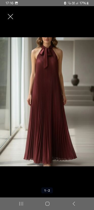 Bordo rəngdə, piliseli uzun ziyafət donu.