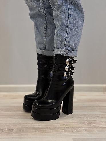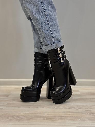 Qalın platforma və blok daban sayəsində həm hündürlük, həm də dayanıqlıq verir; metal dekorlar isə modelə modern və iddialı görünüş qatır. Yan fermuar geyinməyi asanlaşdırır. Şık və diqqətçəkən kombinlər üçün ideal seçim.