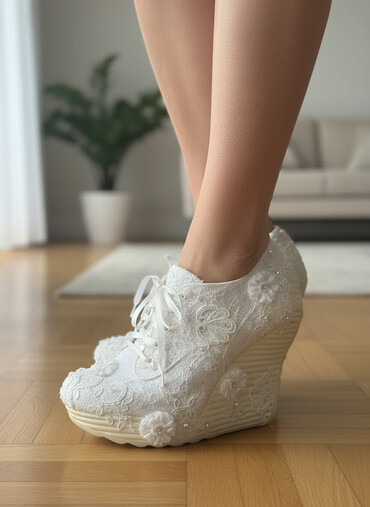 GELIN AYAQQABISI Məhsul: Ağ platforma gəlin krossovkası 165 azn alinib hec geyilmeyib