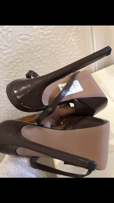 Qara platformalı qadın sandaleti - Brend yazısı: NAKED (daxili tabanda) - Dizayn: Hündür platforma və çoxqalın kvadrat daban; ön hissədə iki enli qayış; ayaq biləyində tənzimlənən qayış - Tokalar:...