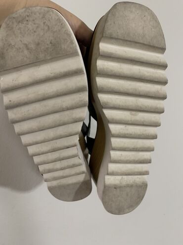 Bata mağazasından alınıb. Platformalı səndəllər yay geyimi üçün uyğun olan şık və rahat ayaqqabı növüdür. Qara rəngdə olan bu səndəllərin platforması naxışlıdır.