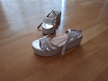 Platformalı, gümüşü rəngli qadın səndəlləri. Ayaq biləyi ətrafında tənzimlənə bilən qayışı və ön hissəsində hörülmüş bəzək elementləri var. Hündür platforma rahatlıq təmin edir və gündəlik istifadə üçün uyğundur. çox rahatdır. Ölçü:40. İstehsal ölkəsi: Yunanıstan. 1-2 dədə tədbirə geyinilib. Çox yaxşı vəziyyətdə. Endirim müzakirə edilə bilər. Босоножки на платформе серебристого цвета. Плетеные. Удобные. Размер:40. Страна производства:Греция. Ношены 1-2 раза на мероприятие. В очень хорошем состоянии. скидка с первоначальной цены может обсуждаться.